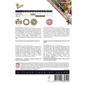 Strooi de zaden vanaf april tot eind mei direct uit over de vollegrond en hark ze lichtjes in, zorg ervoor dat de zaden gelijkmatig over het oppervlakte verdeeld zijn. Dit zaadmengsel bevat een rijk assortiment aan bloemen waarmee u schitterende droogboeketten mee kunt maken, waarvan u jarenlang plezier van hebt. De bloemen tijdig plukken, bloemschikken en de bosjes omgekeerd te drogen hangen op een droge plek, Ca. 5 gram.