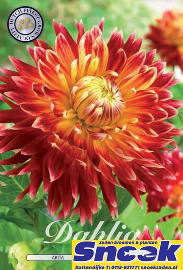 Decoratieve dahlia. Rood met geel. Hoogte 80 cm.