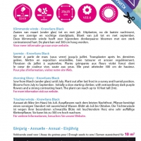 Knowlians Black is een aanvankelijk traag groeiende klimplant met een bijzondere zwartpaarse bloem met een sterk contrasterend felgekleurd hart. De plant kan wel 250 cm hoog worden. Zaaien van maart (onder glas) tot en met juli. Uitplanten, na de laatste nachtvorst, op een zonnige en vochtige standplaats. Bloeit van juli tot en met september.