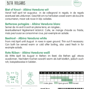 Zoetere smaak dan normale rode biet en ook de jonge bladeren zijn eetbaar