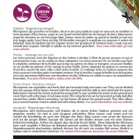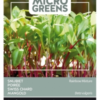 Dit kleurrijke mengsel is oogstbaar na ongeveer 4 weken als babyleaf. Snijd de bladeren bij het oogsten boven het groeipunt af, hierdoor kunt u vaak nog een tweede keer oogsten. Heerlijk in salades en bij winterse gerechten. Microgreens zijn groenten en kruiden, die je in een jong stadium oogst en rauw eet, te verdelen in twee groepen; Micro leaves: oogst en eet zowel het kiemblad als de stengel; de kiem. Baby leaves: oogst de scheuten en eet het jonge blad. Zaaien: strooi de zaden op grond en bedek ze met een dun laagje aarde, houd deze vochtig.